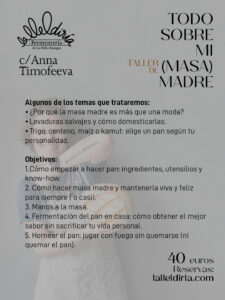 Todo sobre mi (masa) madre. Taller de elaboración de pan